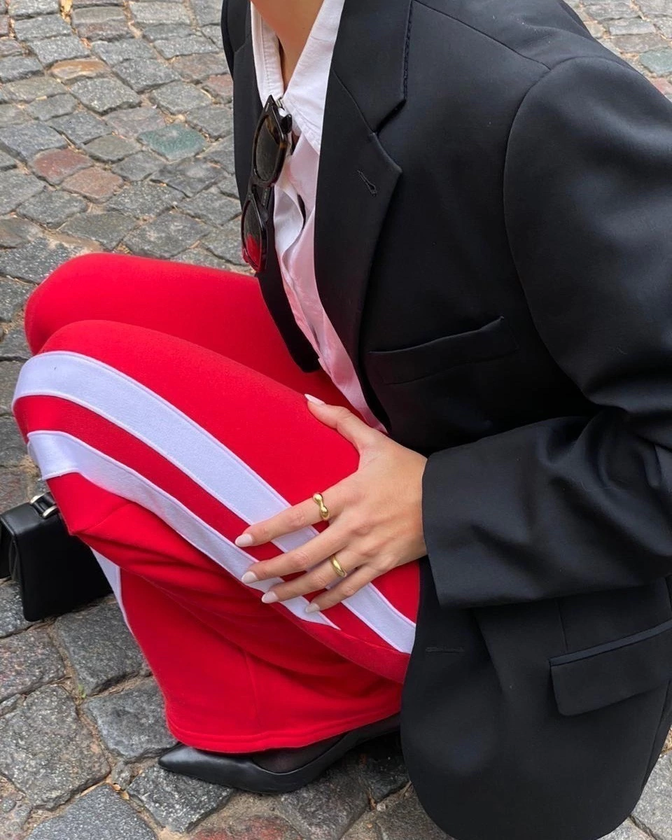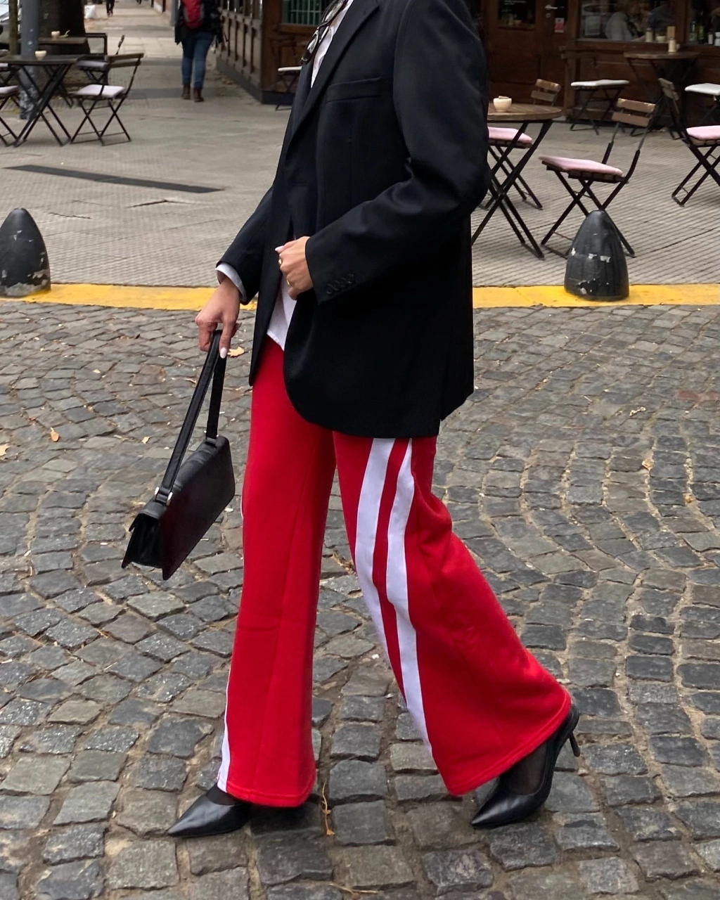 joggin de friza con recortes, ancho con bolsillos a los costados.